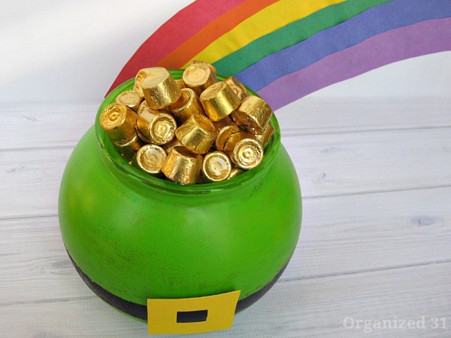This would make a fun centerpiece for your St. Paddy’s Day table. St. Patrick’s Day Bucket O Gold Candy Holder from Organized 31