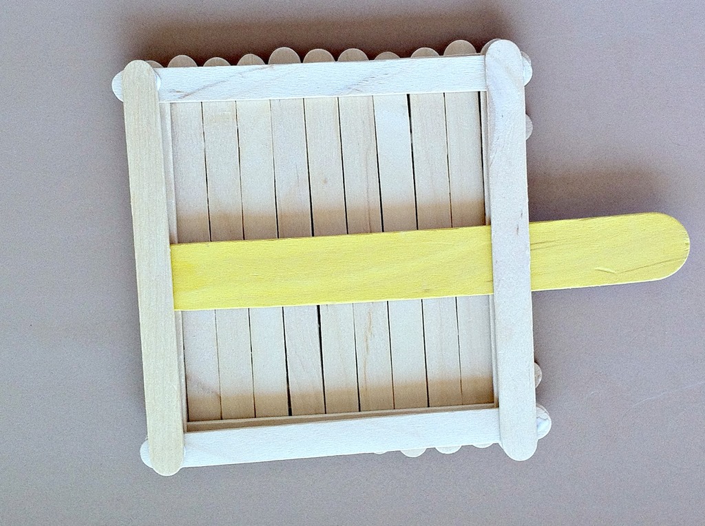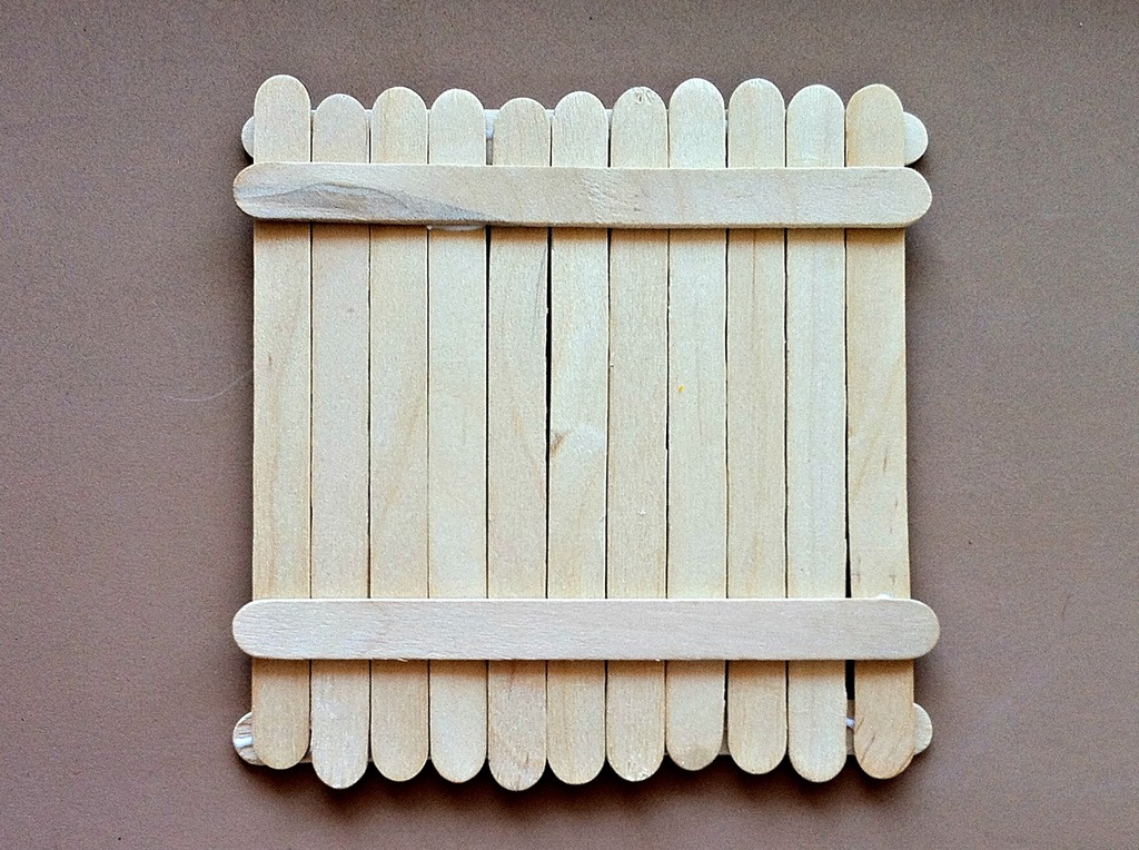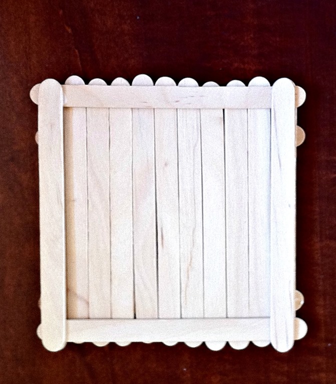 You want to put a popsicle stick on each side vertically. And then one on each side horizontally. (It doesn’t matter if you start vertically or horizontally as long as you keep alternating).