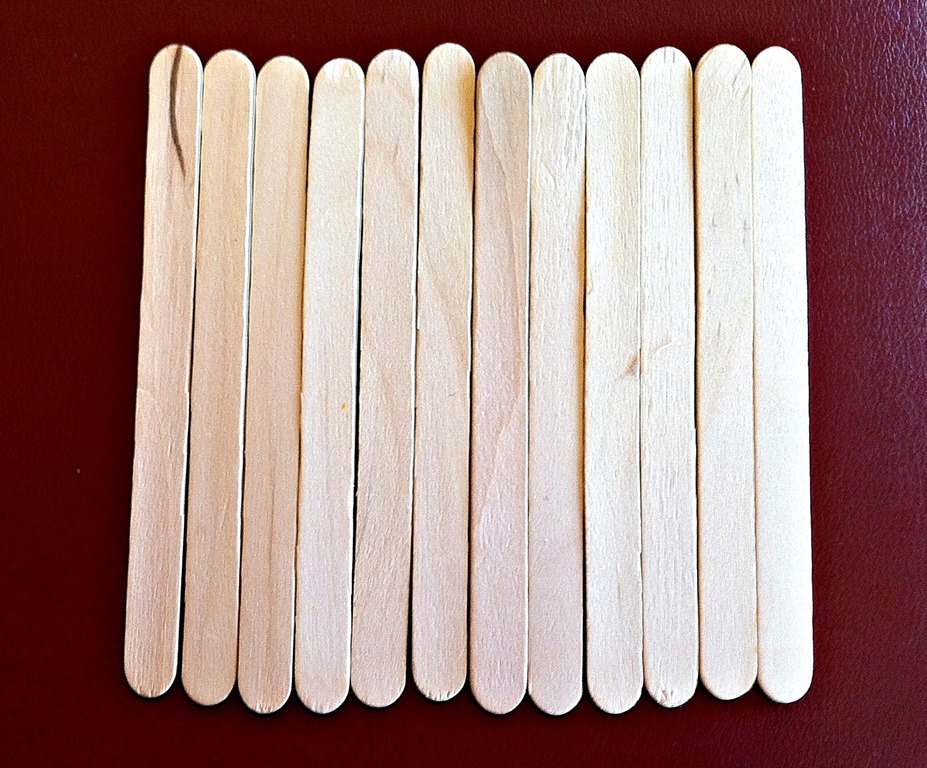 Lay out 10-12 crafts sticks side by side. They don’t have to be lined up perfectly – just as close as possible without driving yourself crazy!